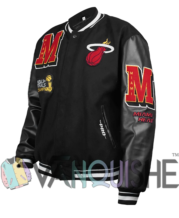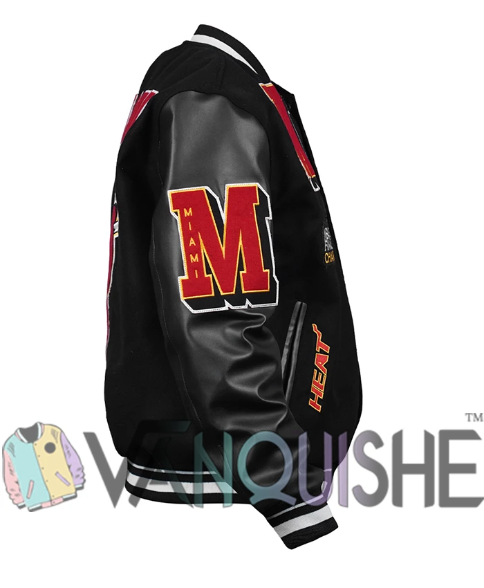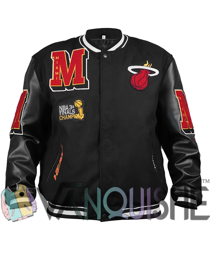 Basketball Team Miami Heat Zipper over Button Varsity Black Wool Jacket