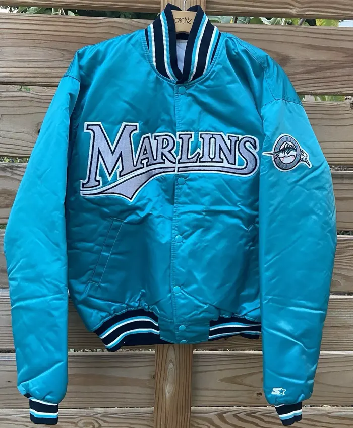 Be the first to review “Miami Marlins Blue Vintage Full Snap Starter Bomber Jacket” Cancel reply