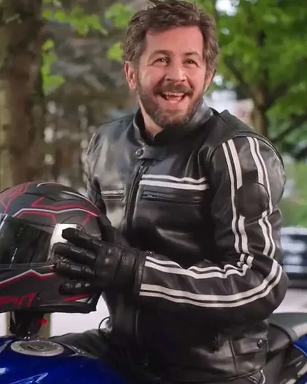 Richie TV Series Laid 2024 Michael Angarano Black Cafe Racer Leather Jacket