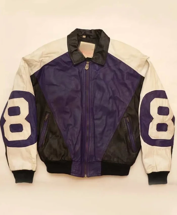 8 Ball Logo Michael Hoban Purple and Black Bomber Leather Jacket For Men and Women
