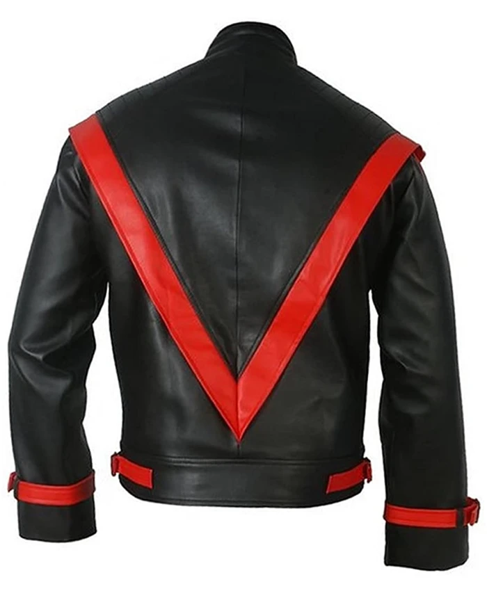 Michael Jackson Thriller Red Stripe Black Leather Jacket