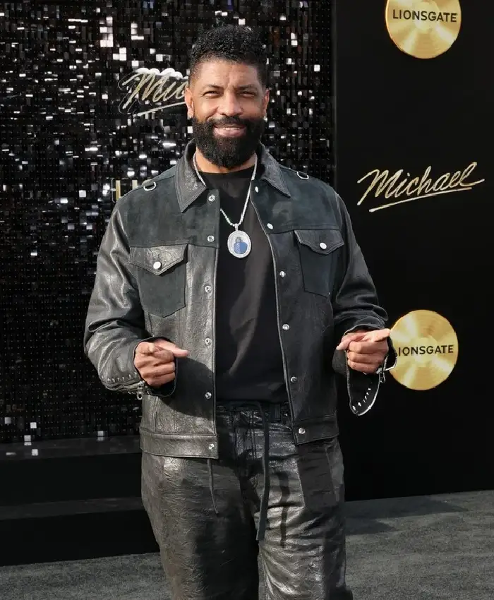 Buy Deon Cole Michael Movie 2026 Red Carpet Premiere Black Leather Trucker Jacket For Men
