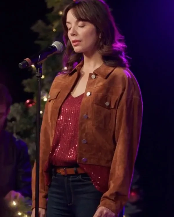 Jessica McFall Movie Jingle Bell Love 2024 Michelle Morgan Brown Suede Leather Jacket