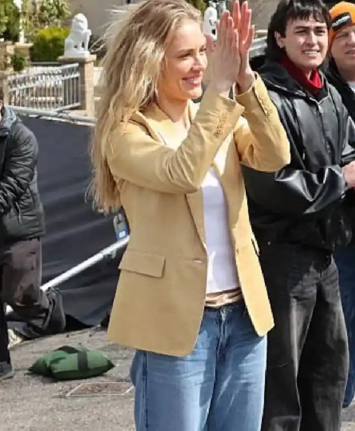 Michelle Randolph “Clashing Through The Snow” 2026 Yellow Leather Blazer On Sale For Women