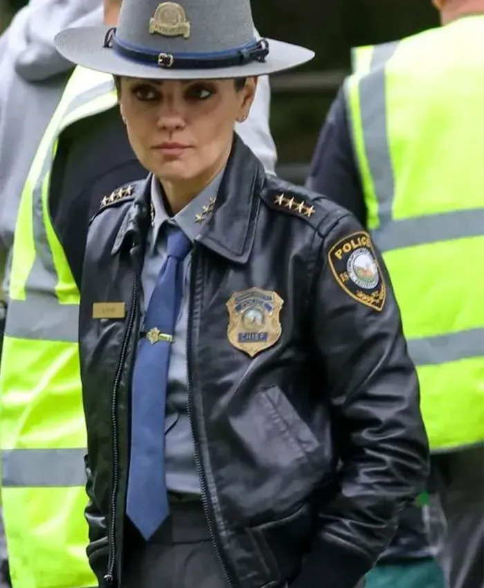 Mila Kunis Wake Up Dead Man Movie 2025 Geraldine Scott Black Leather Bomber Jacket Mens and Womens