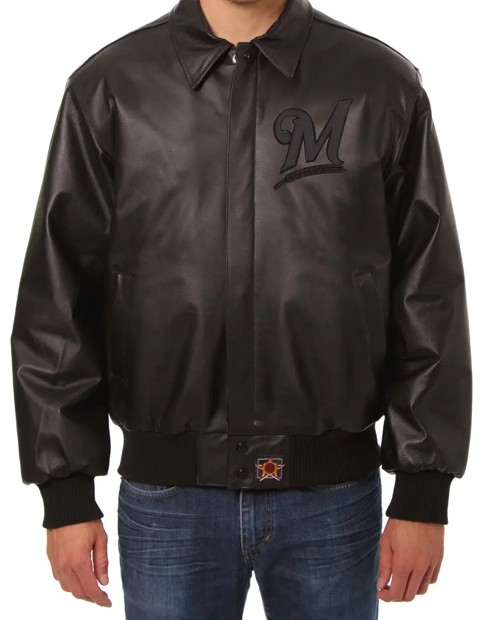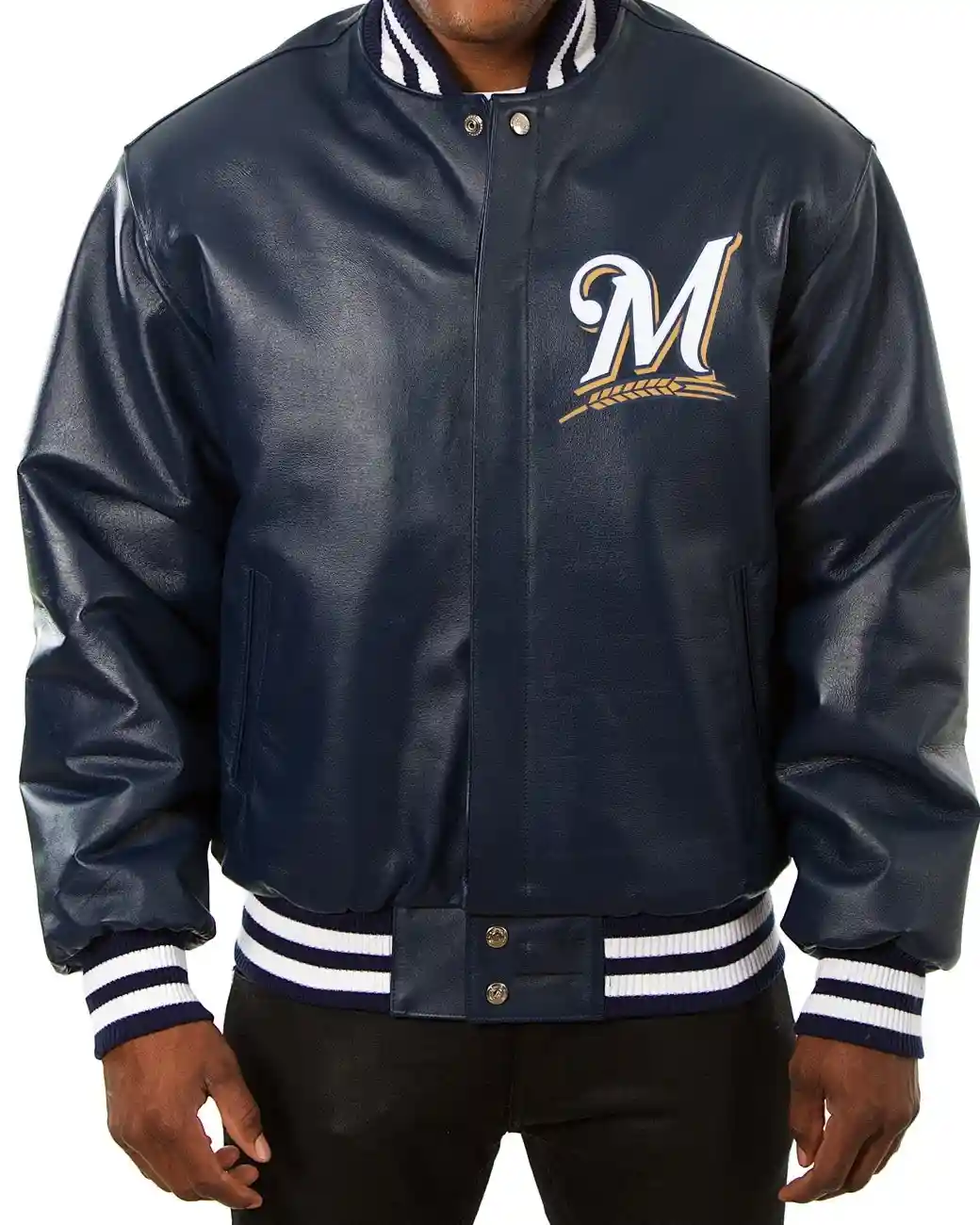 MLB Team Milwaukee Brewers Leather Jacket For Men and Women On Sale