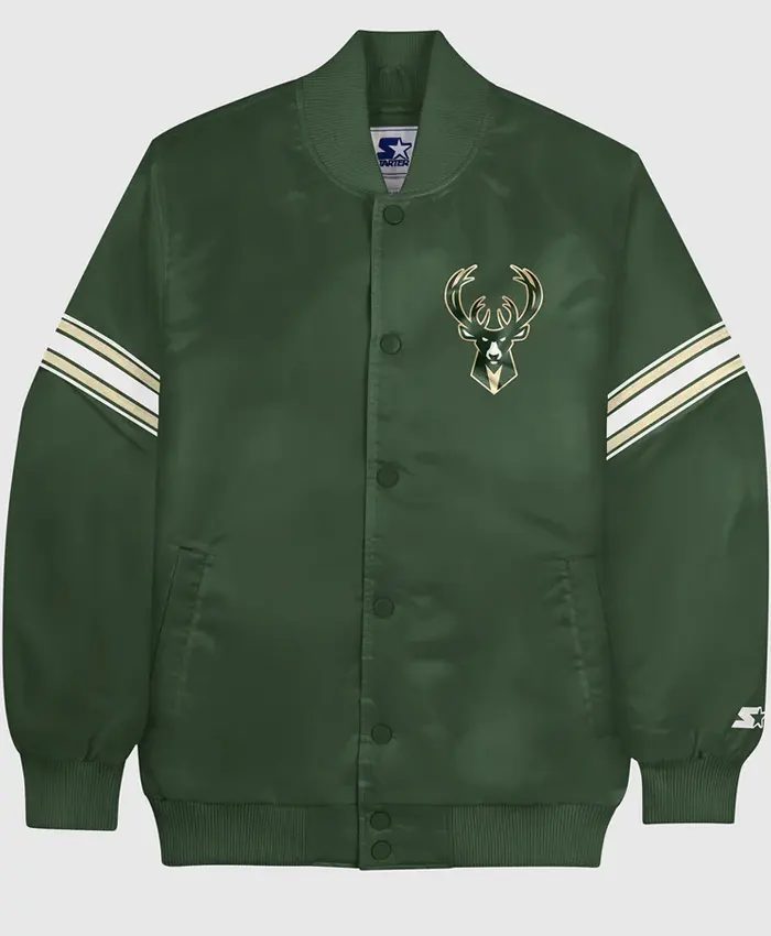 Milwaukee Bucks Full-Snap Green Satin Varsity Jacket For Sale