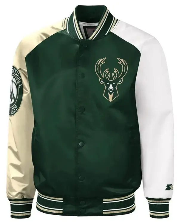 Be the first to review “Milwaukee Bucks Hunter Green and Cream Varsity Satin Jacket” Cancel reply