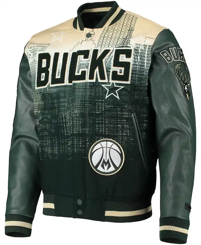 Milwaukee Bucks Full-Zip Green Leather Varsity Jacket For Sale