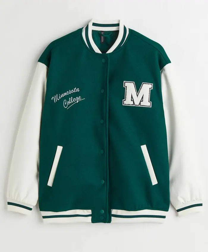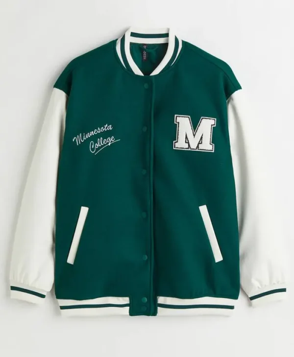 Be the first to review “Minnesota College Varsity Bomber Jacket Green and Cream” Cancel reply