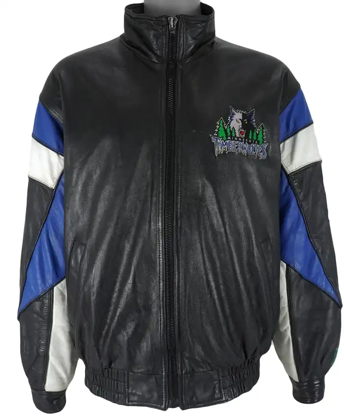 Buy Minnesota Timberwolves Vintage Full-Zipper Leather Jacket For Sale