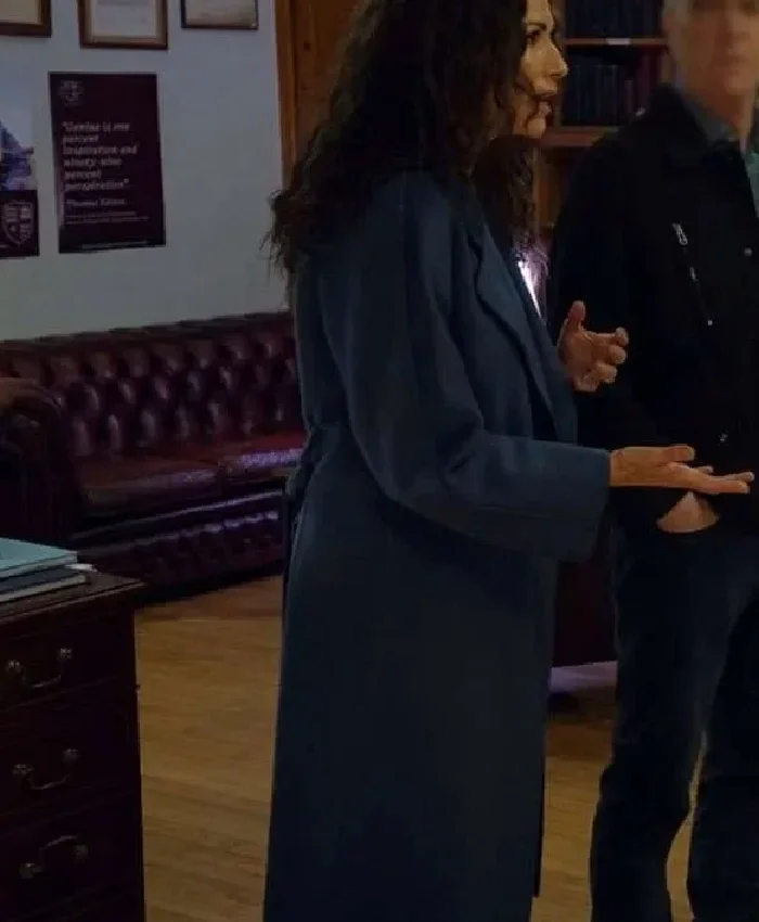 Run Away 2026 Minnie Driver x Ingrid Greene Women’s Blue Wool Belted Coat