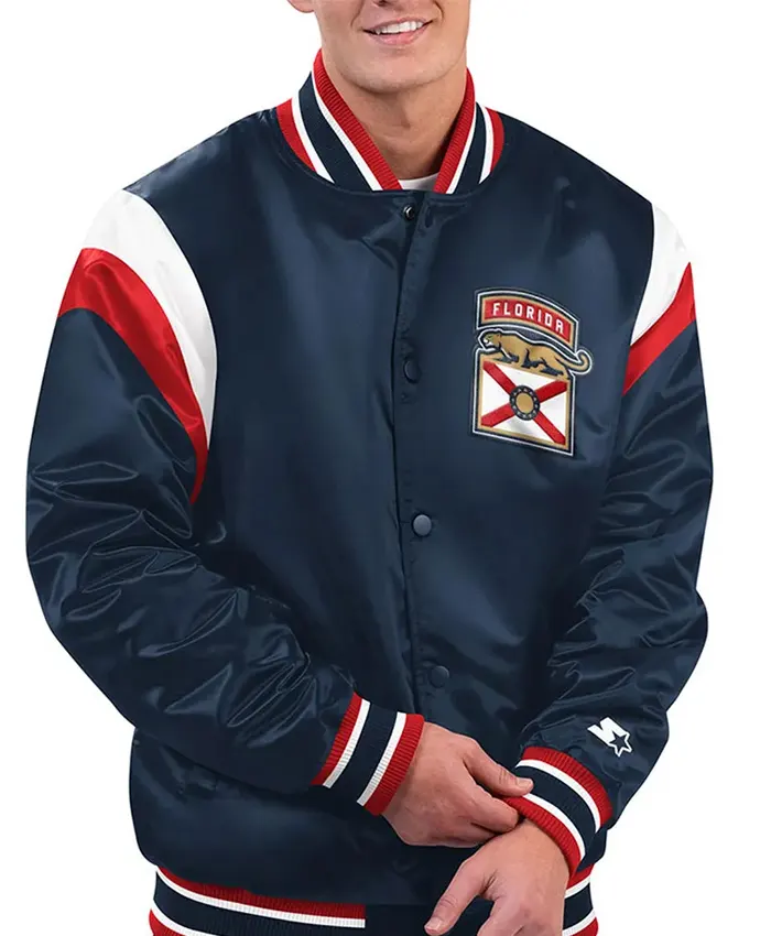 Mireya Florida Panthers Shut Out Satin Blue Varsity Bomber Jacket