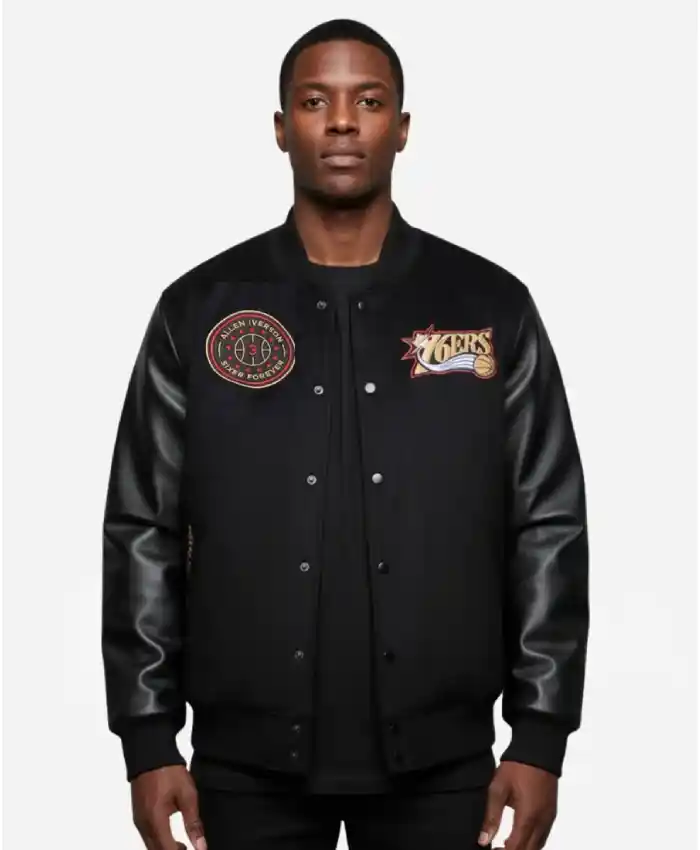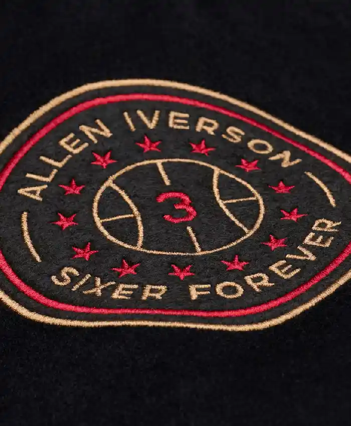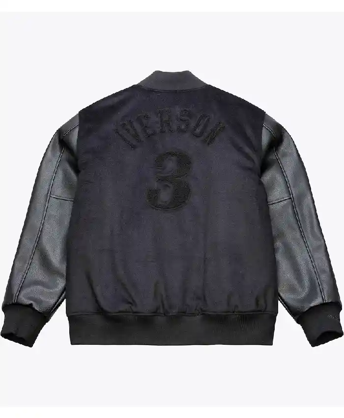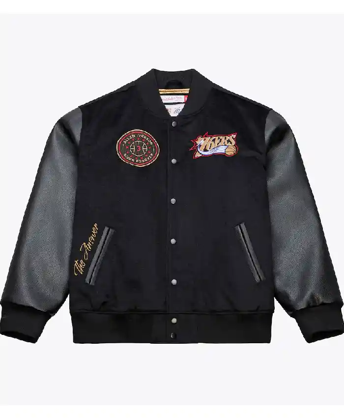 Mitchell & Ness Philadelphia 76ers Allen Iverson Walk The Tunnel Black Varsity Jacket On Sale For Men and Women