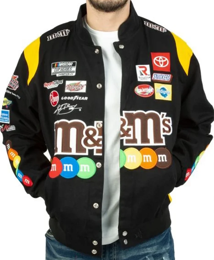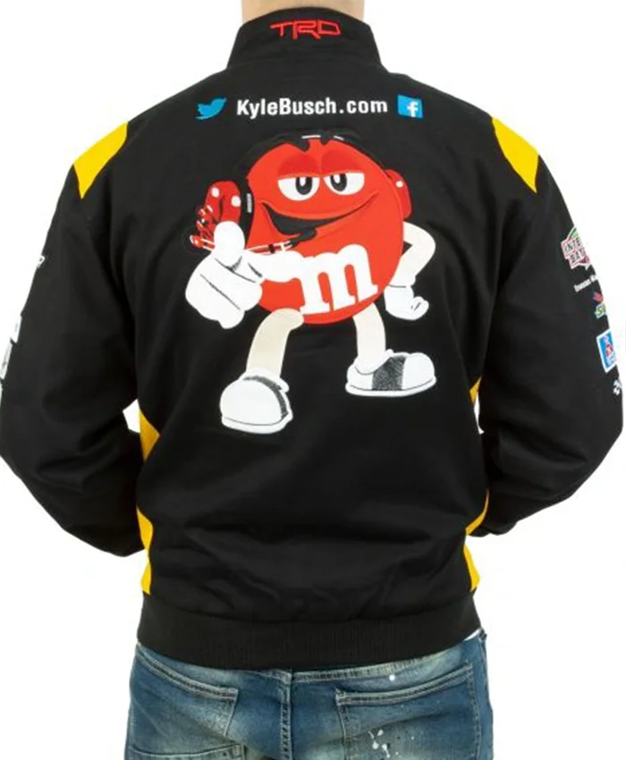 The M&M’s NASCAR Jacket is like a Sweet Ride that will you take on a journey of comfort and trend at the same time. This sleek black Bomber Jacket is a must-have for any NASCAR fan. This one is made from tough polyester and strikes the right note between style and functionality. A mighty logo of M&M’s on the front is written in a playful way.