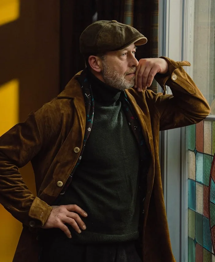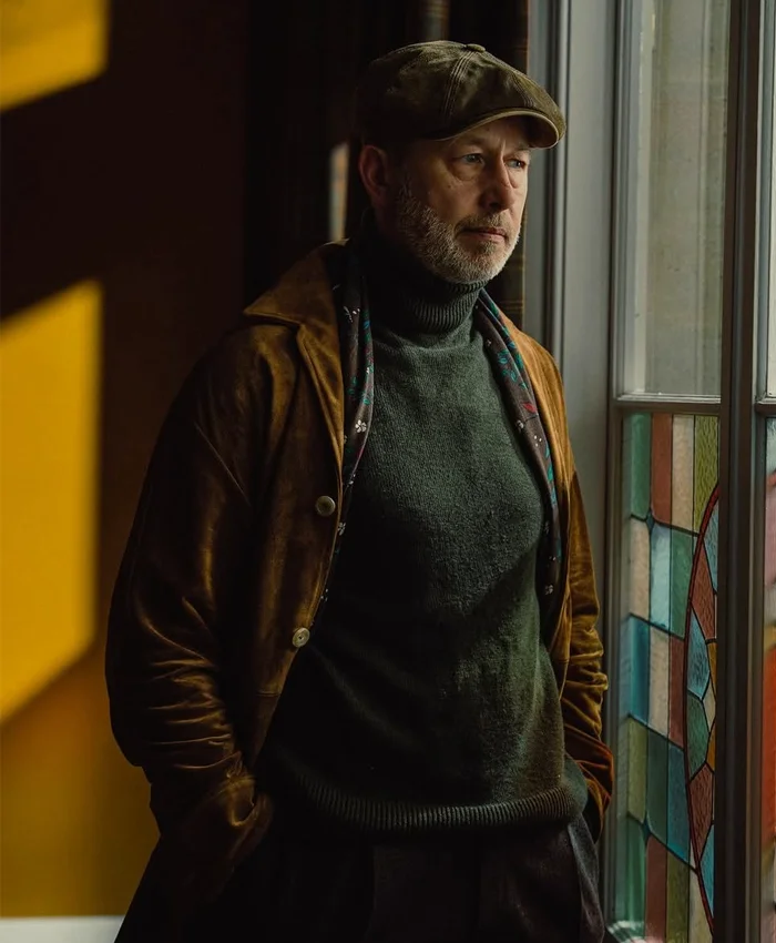 Daniel Betts TV-Series MobLand 2025 Brendan Harrigan Brown Suede Leather Coat