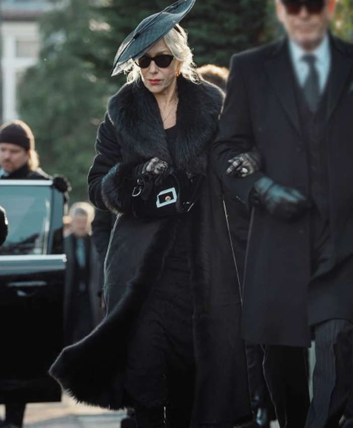 Helen Mirren TV-Series MobLand 2025 Maeve Harrigan Black Suede Leather Coat