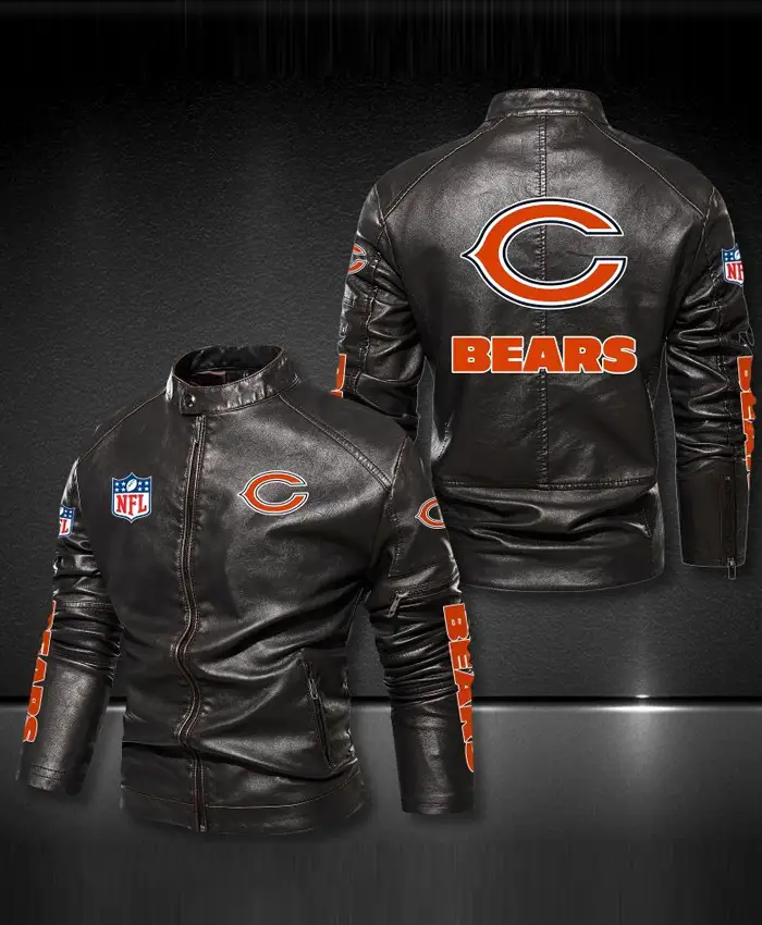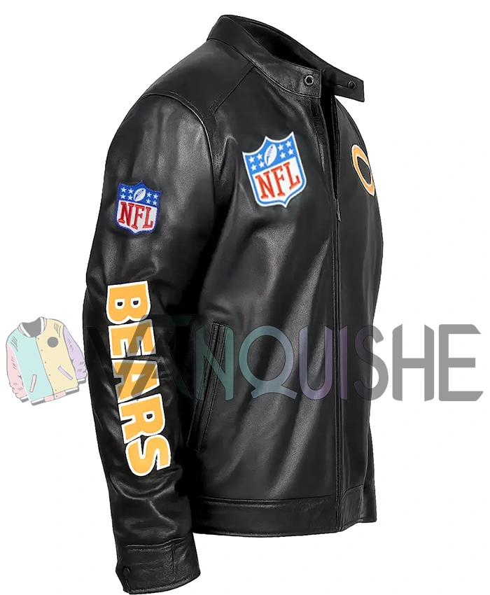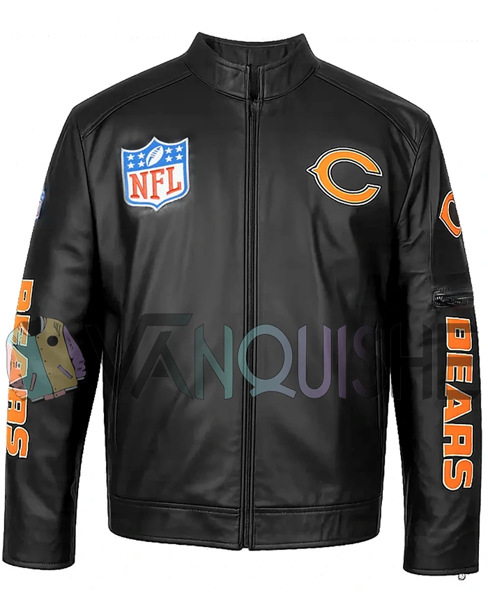 NFL Chicago Bears Morrie Cafe Racer Black Leather Jacket For Sale