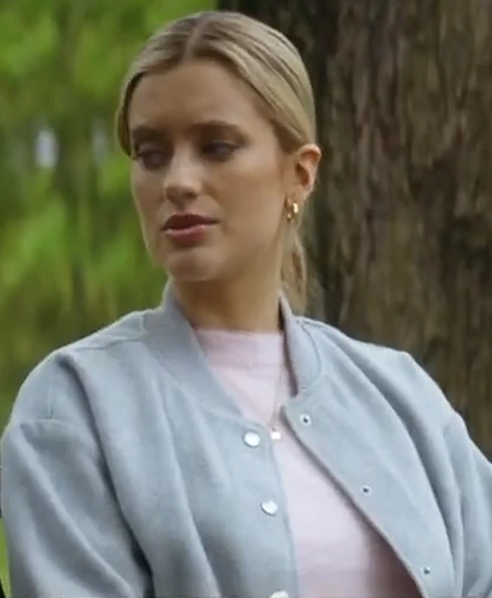Mia Healey TV-Series Motorheads 2025 Alicia Whitaker Grey Bomber Jacket