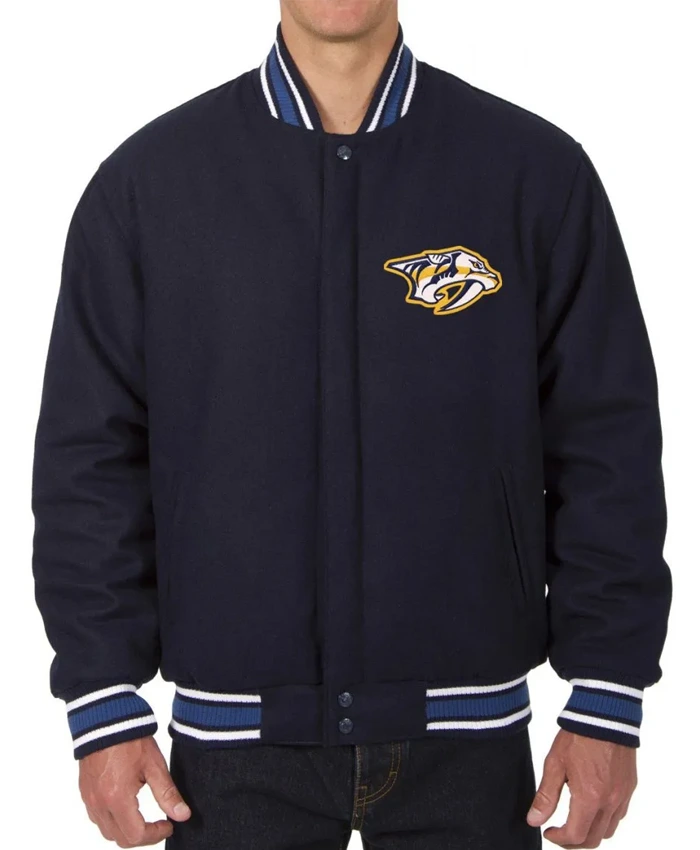 Nashville Predators Blue Bomber Wool Jacket For Men and Women