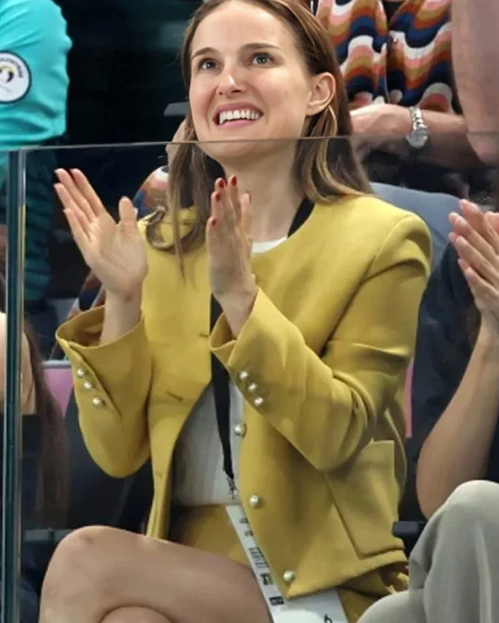 Natalie Portman Artistic Gymnastics Women Team Final Yellow Wool Coat On Sale