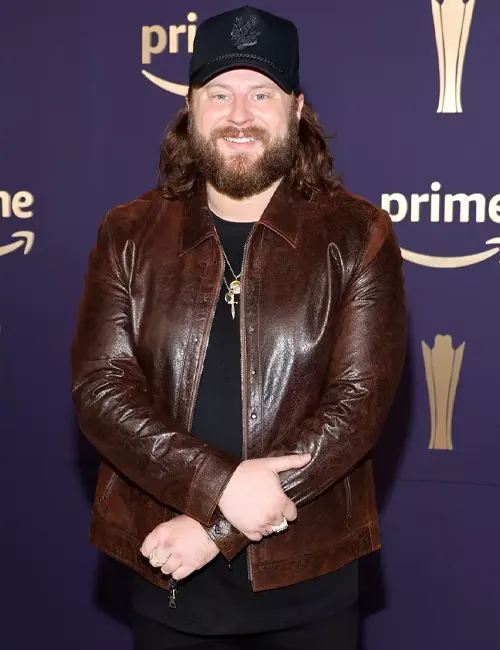 Buy Nate Smith 59th Academy of Country Music Awards 2024 Brown Leather Jacket For Sale