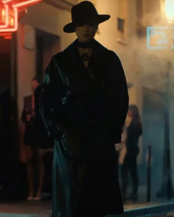 Zee Movie The Killer 2024 Nathalie Emmanuel Black Leather Trench Coat