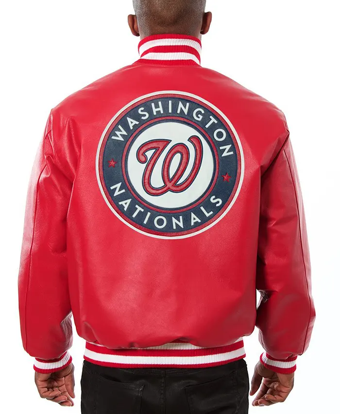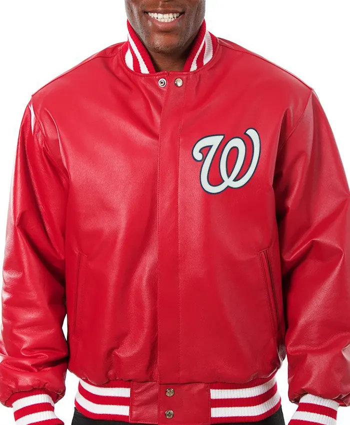 Nationals Red Bomber Leather Jacket For Mens and Womens on Sale