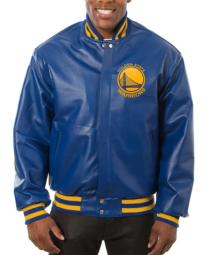 Navy Blue Bomber Warriors Leather Jacket For Mens and Womens on Sale