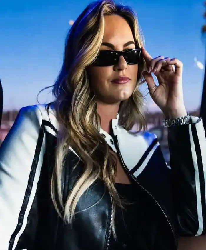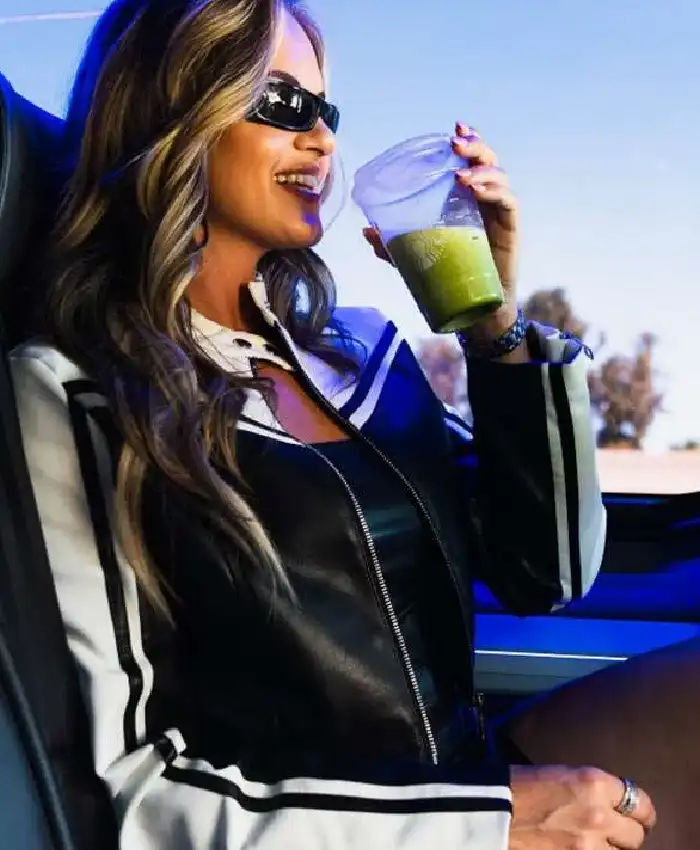 Jenna Bandy NBA All-Star Celebrity Game 2026 Black and White Cropped Leather Jacket For Women
