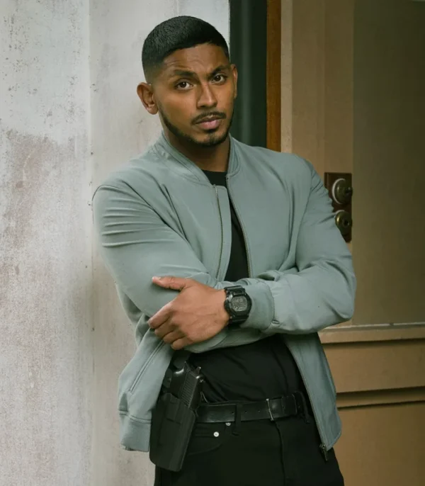 Sean Sagar TV-Series NCIS Sydney 2025 DeShawn Jackson Grey Bomber Jacket