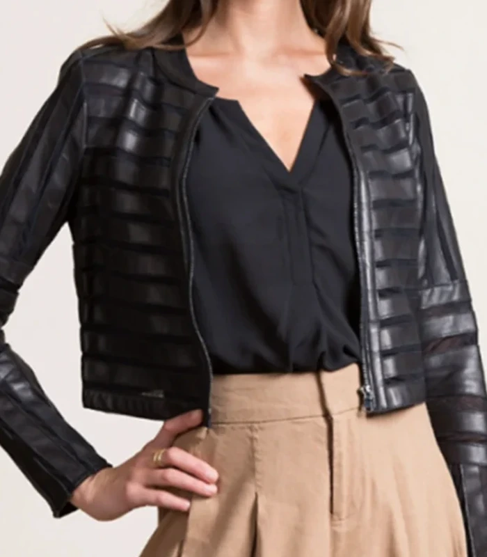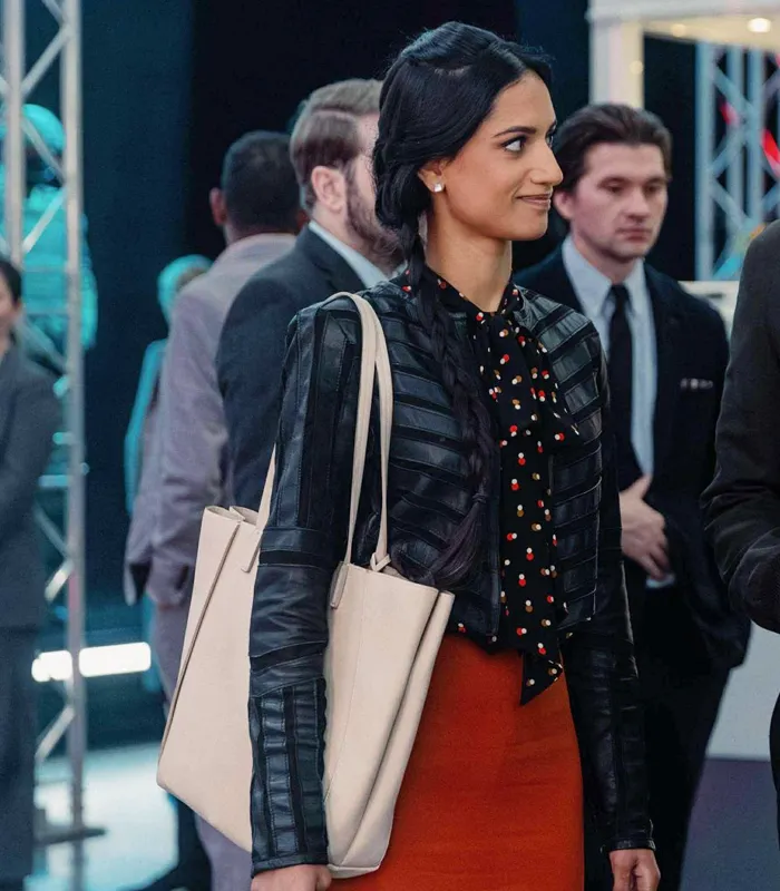 Amita Suman NCIS Tony and Ziva 2025 Claudette Caron Black Striped Leather Jacket