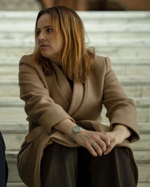 Lies Visschedijk 2024 Nemesis TV-Series Sylvia van Maele Light Brown Wool Trench Coat