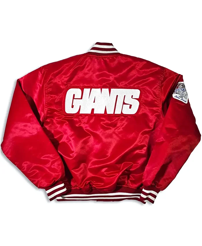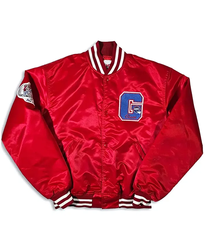 New York Giants 80s Super Bowl Red Satin Varsity Bomber Jacket