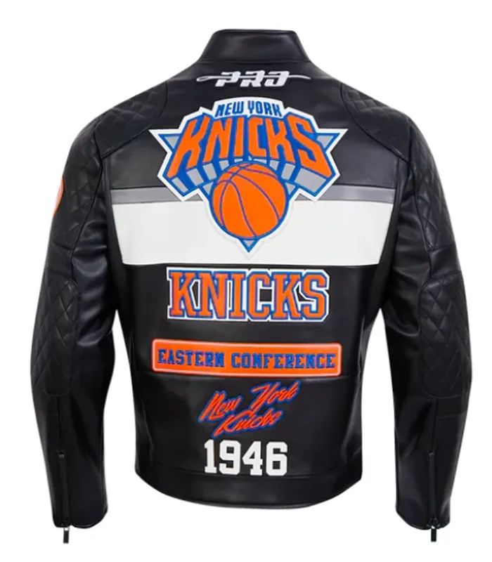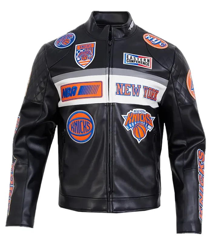 New York Knicks Moto Full-Zip Black Leather Jacket For-Sale