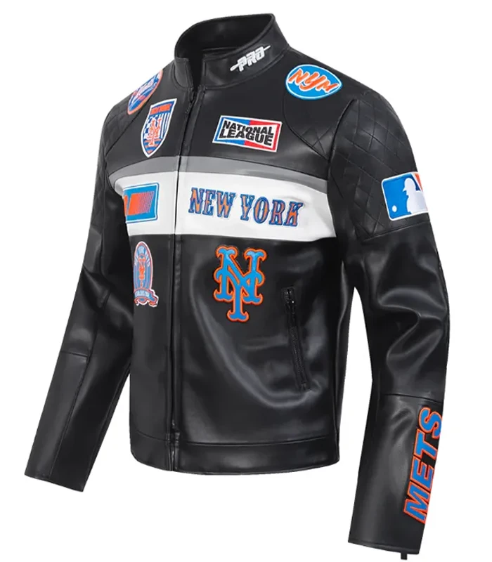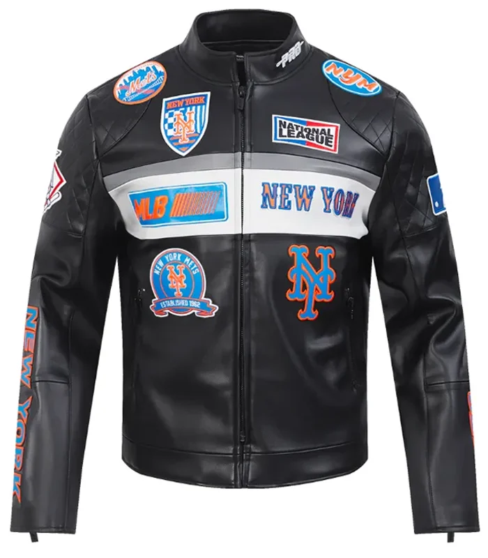 New York Mets Moto Black Full-Zip Leather Jacket For-Sale