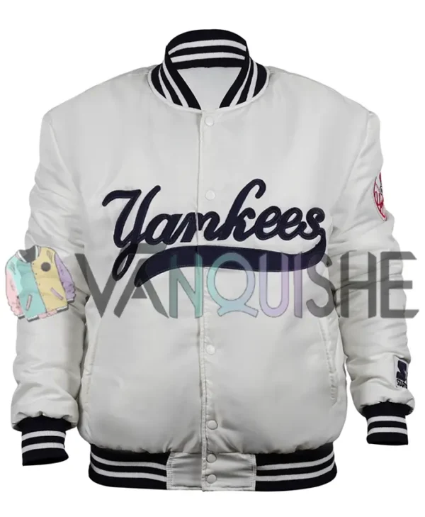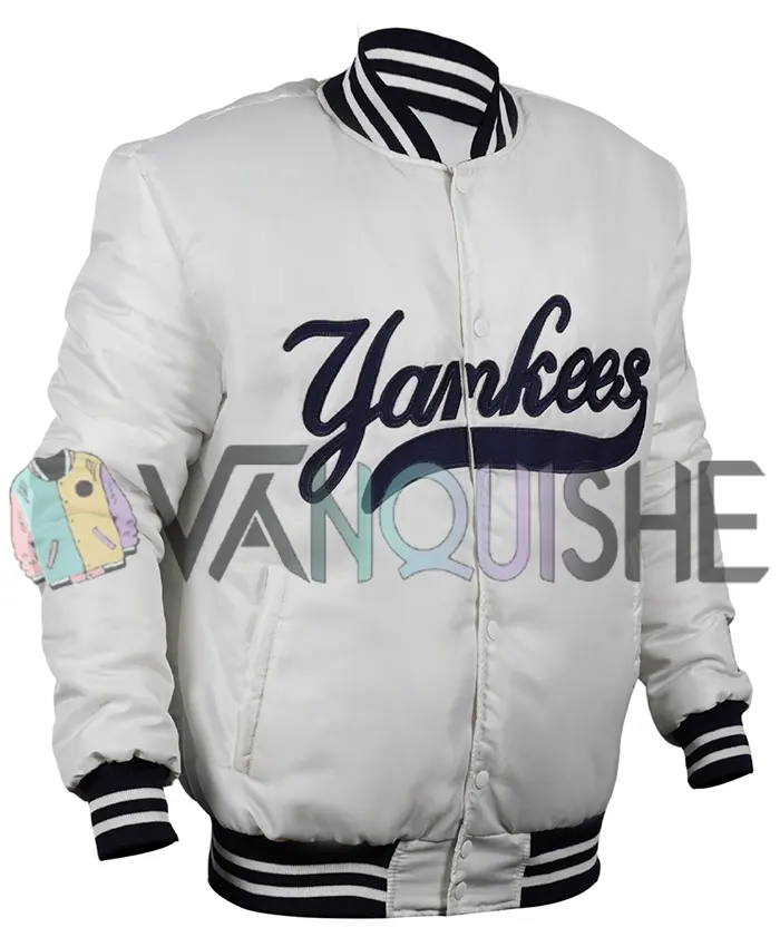 New York Yankees MLB Team 90s White Varsity Bomber Jacket