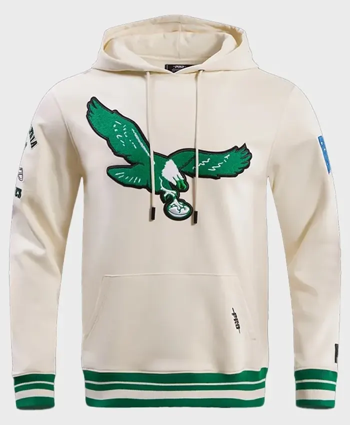Philadelphia’s vintage flair and the classic design of the hoodie are maintained with the features neatly stitched in it. Like rib-knitted cuffs, which give a snug fitting on the cold and freezing days, and the pullover closure style of the piece is something that lends you an armor of warmth that also makes you comfortable. And this NFL Eagles classic hoodie couldn’t be more classic, as its kangaroo pocket provides functionality and warmth to hands when placed inside; it also gives off a trendy flair to the garment.