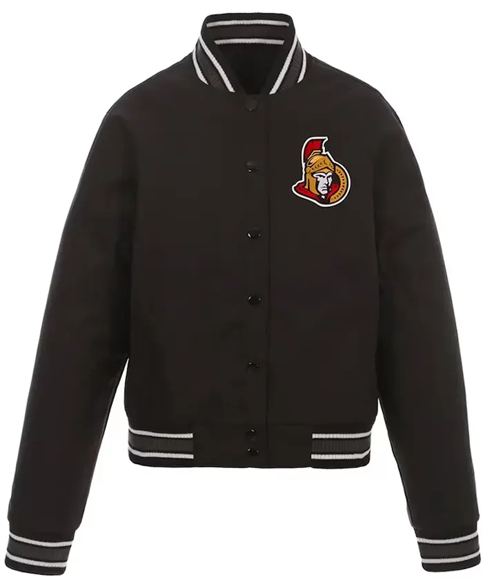 NHL Ottawa Senators Poly Twill Front Hit Black Varsity Jacket For Men and Women