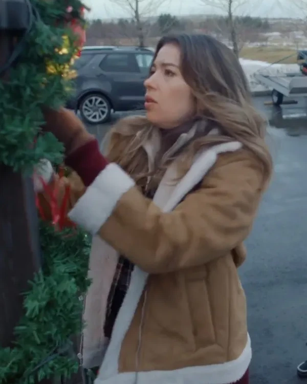 Elyse Movie The Finnish Line 2024 Nichole Sakura Brown Shearling Leather Jacket