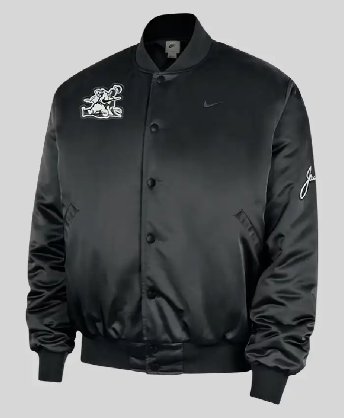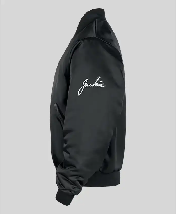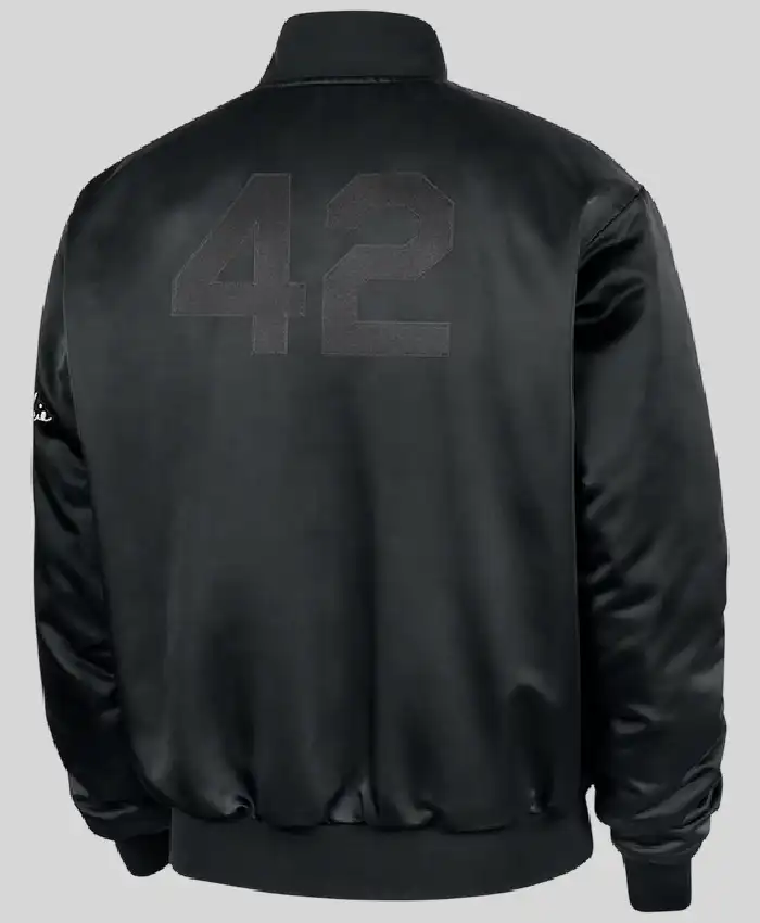 Shop Nike Jackie Robinson Full Snap Black Satin Bomber Jacket For Men and Women