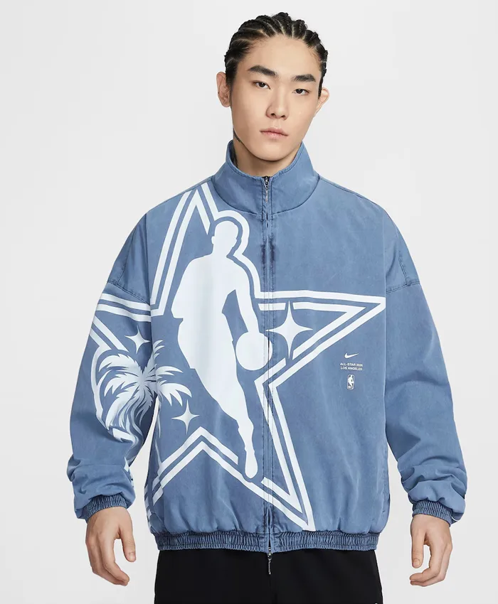 Apart from that, the beautiful blue color gives all star warm up jackets 2026 a fresh look since it stands out without being too loud. You can easily pair it with jeans, joggers, or even shorts. Moreover, the nike nba all star 2026 jacket matches perfectly with sneakers and gives you a cool, athletic style. The stand-up collar adds a modern touch while also protecting your neck from cold air.