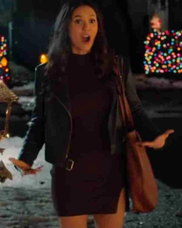 Natalie Bauer Movie Love Hard Nina Dobrev Black Leather Jacket