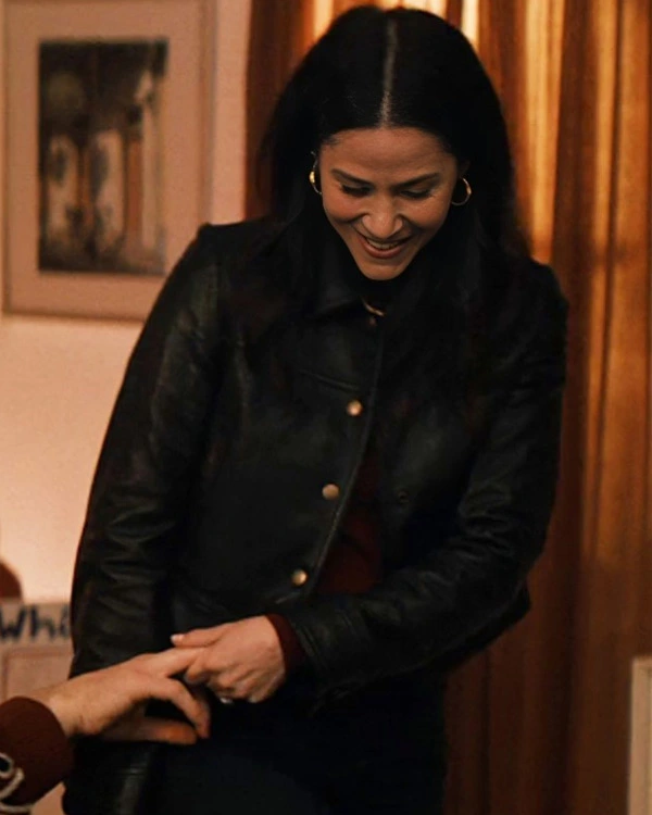 Jackie Tohn TV-Series Nobody Wants This 2024 Esther Roklov Crop Black Leather Jacket