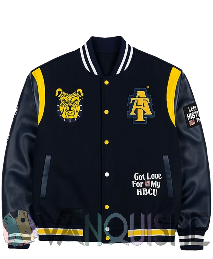North Carolina A&T Aggie Pride Varsity Blue Wool/Leather Jacket