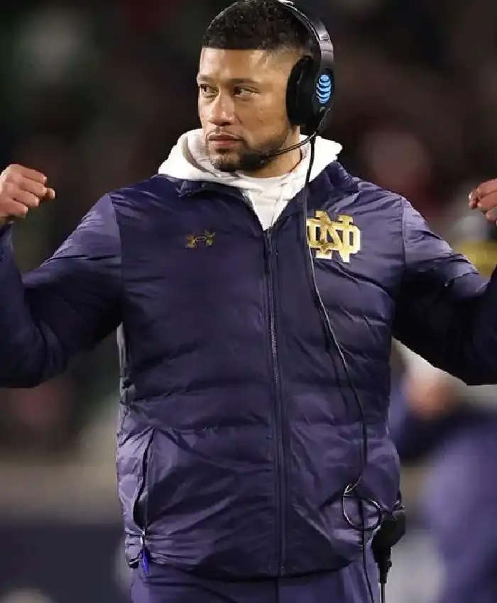 American Football Coach Marcus Freeman Blue Puffer Jacket For Men