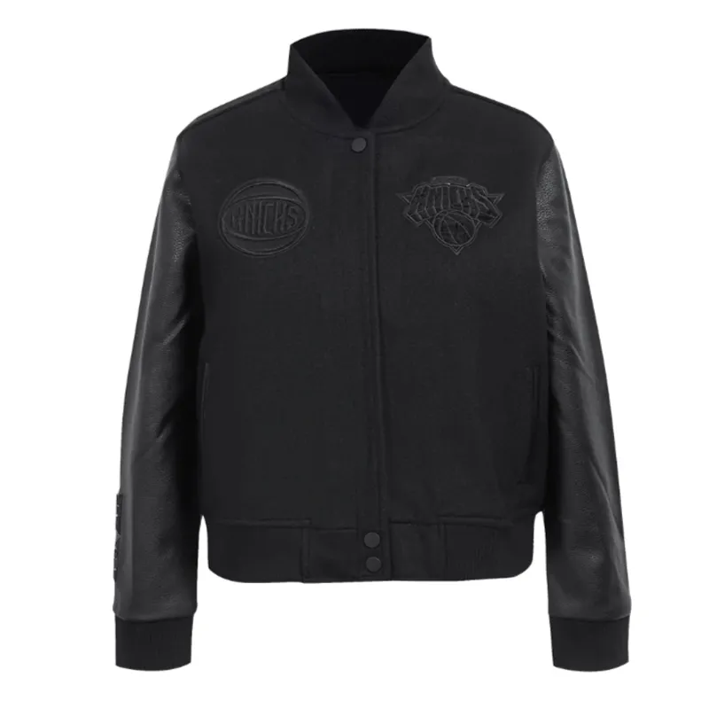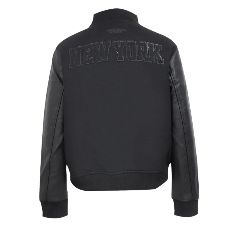 New York Knicks Triple Black Wool Varsity Jacket For Sale Men and Women