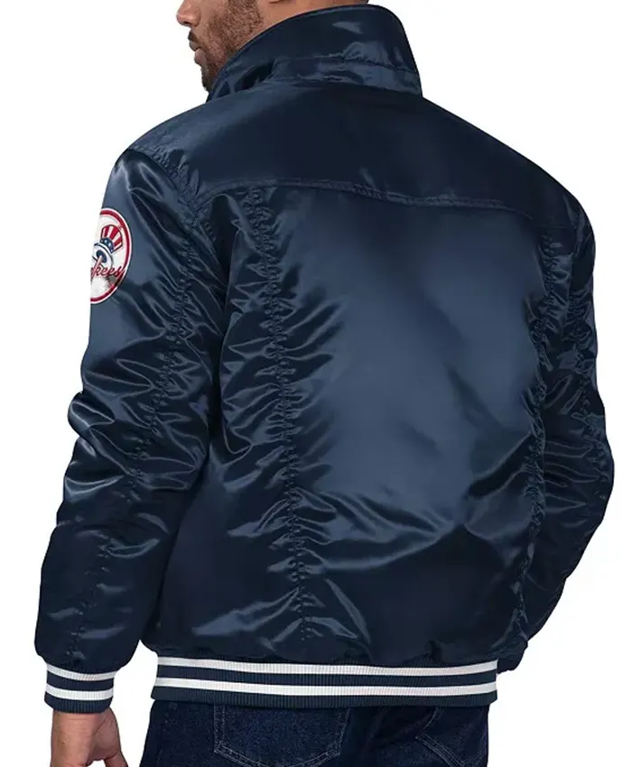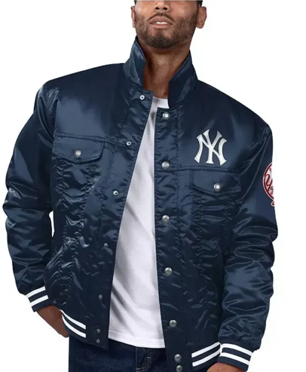 Shop NY Yankees Bomber Blue Satin Jacket for Men’s and Women’s