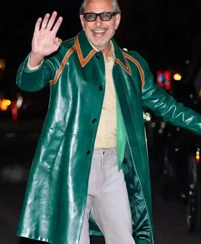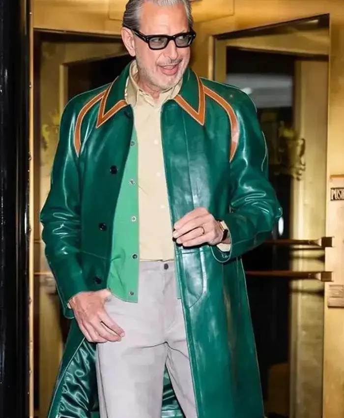 Stand Out in Goldblum’s Signature Green Leather Coat