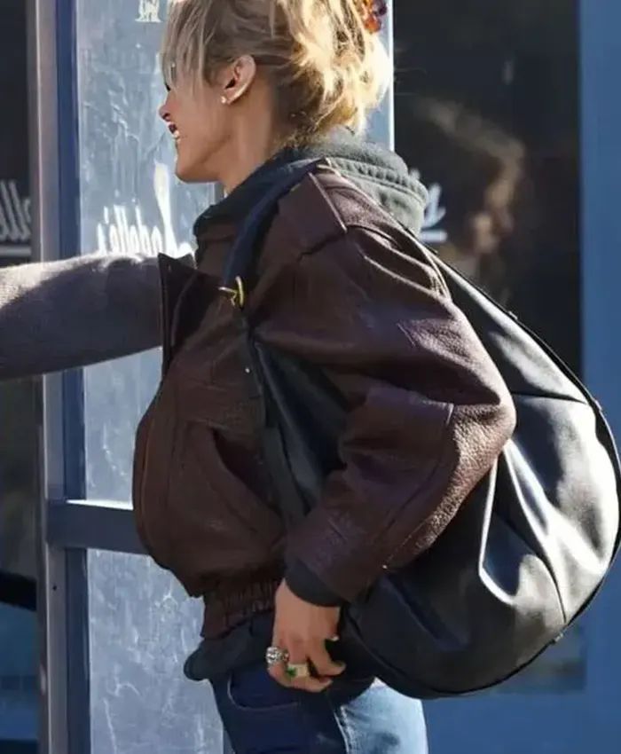 Buy Bella Hadid 2026 NYC Brown Leather Jacket – Street Style Fashion
